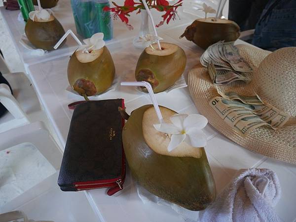 當地人很熱情給我們椰子迎賓飲料~跟花圈~